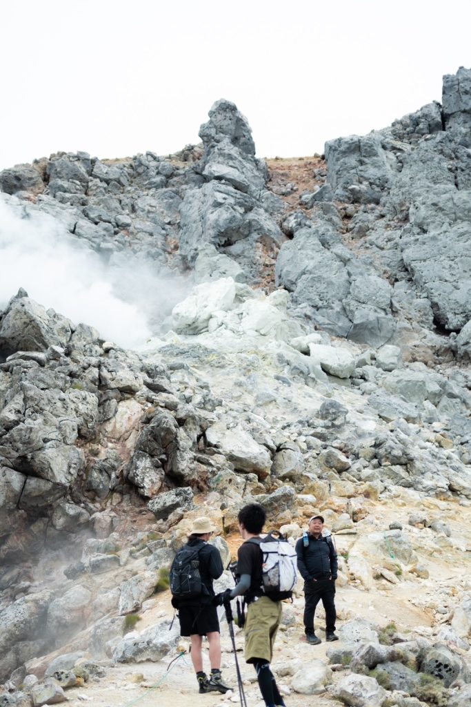 山頂直下と、山頂にはすこしスペースがあるので休息を取られる場合はそこがおすすめかな。所々座るとサウナみたいに蒸気が湧いている所があるので寒い時期でも気持ちよさそう!