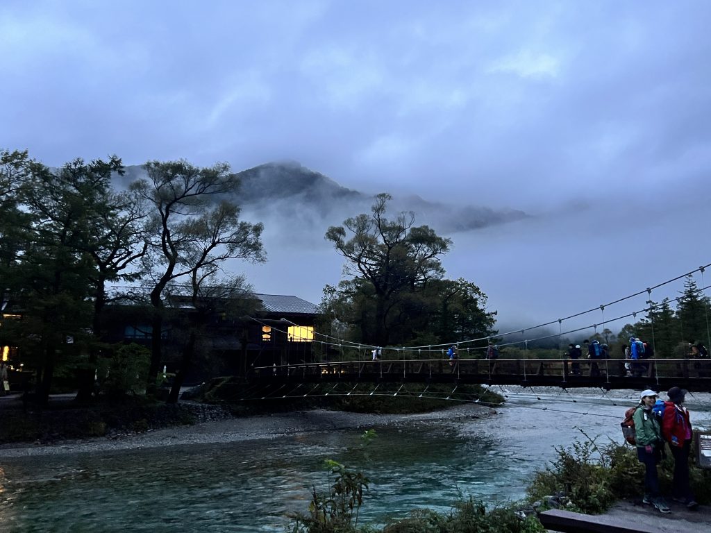 気がついたら上高地、小梨平まで到着。早々にバスのチケット手配して平湯温泉口まで。
