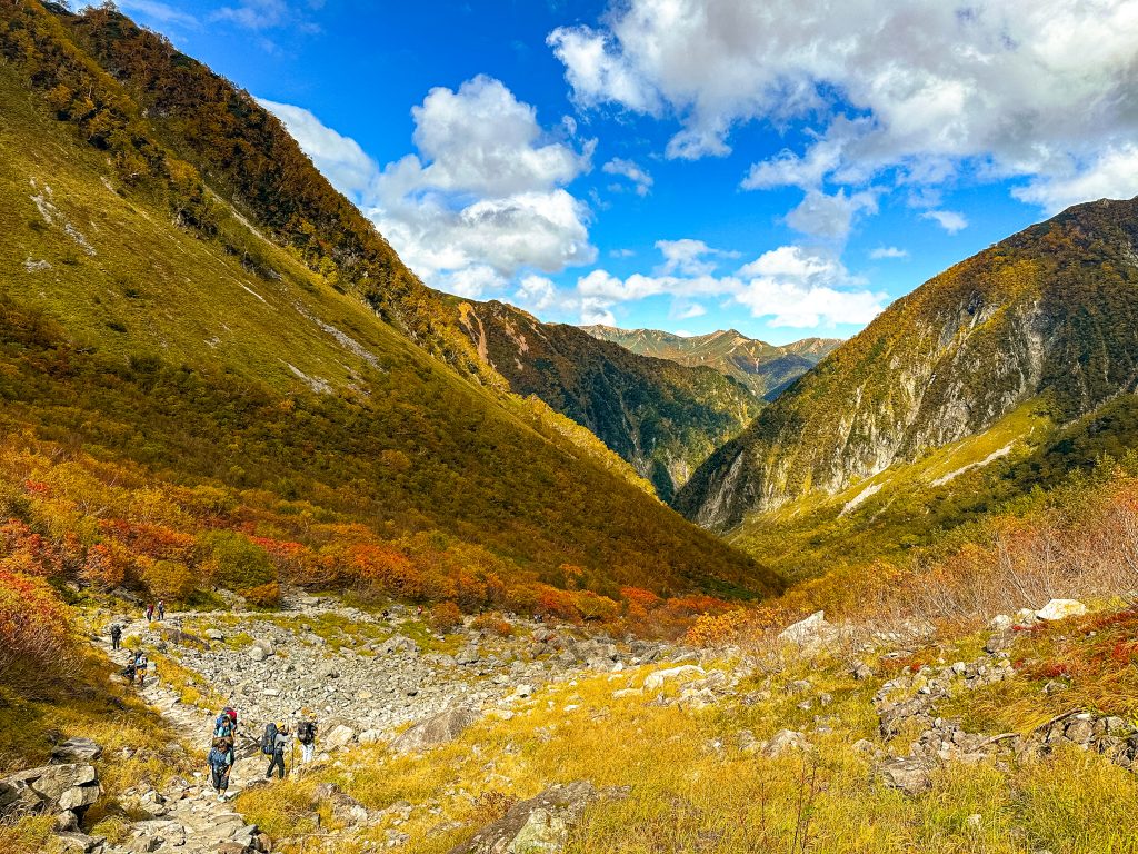 徐々に標高が上がってくると谷沿いに良い風が抜けてくる。そして紅葉がどんどん綺麗になってくるので、少しずつ足早になる。